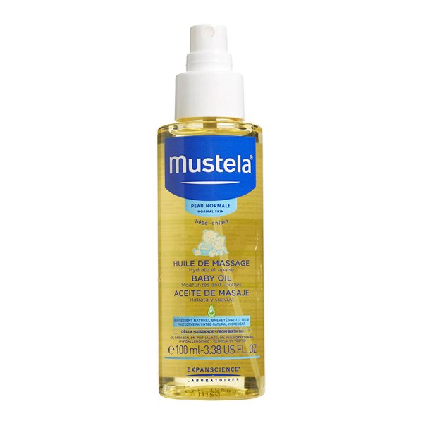 Dry oil for an easy massage. Leaves a protective film on newborn(1), baby and child's skin.